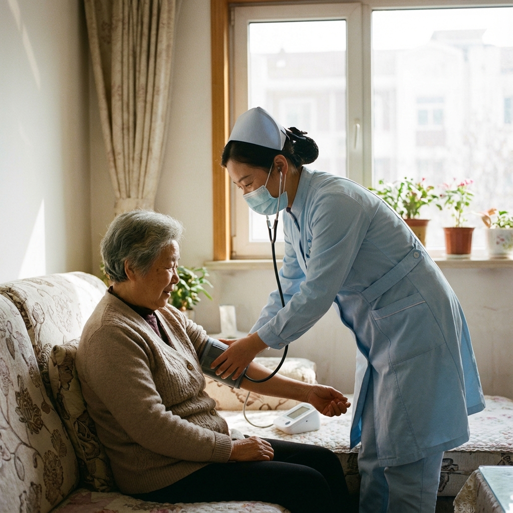 注册护士上门,将医院的专业护理延伸至家庭。严格执行“三查八对”,确保安全规范。